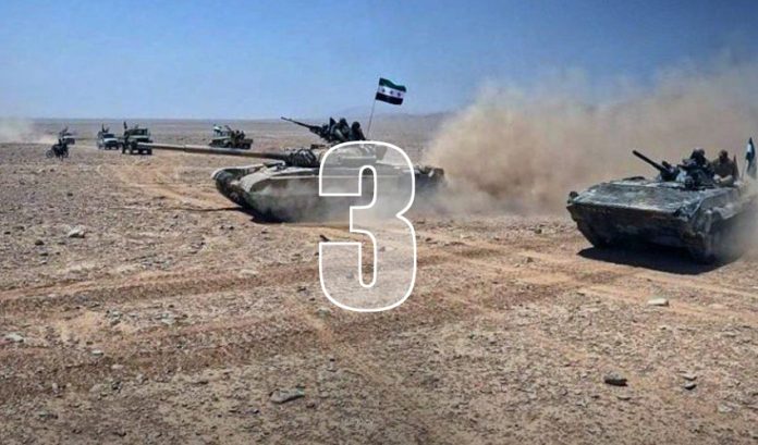 أُصيب ثلاثة جنود من الجيش العربي السوري، جراء استهداف “قسد” بطائرات مسيّرة حاجزاً للشرطة العسكرية في محيط بلدة دير حافر بريف حلب الشرقي.