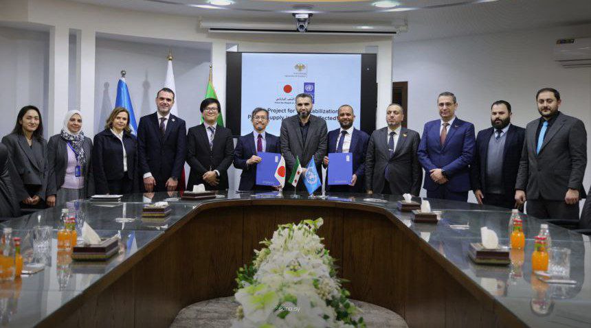وقّع القائم بأعمال السفارة اليابانية في دمشق، أكيهيرو تسوجي، والممثل المقيم بالإنابة لبرنامج الأمم المتحدة الإنمائي في سوريا (UNDP) محمد صديق مضوّي، اليوم الثلاثاء، المذكرات الخاصة بالمنحة اليابانية المقدّمة لسوريا، والبالغة 1.952 مليار ين ياباني (نحو 12.4 مليون دولار)، لتنفيذ مشروع “تعزيز استقرار إمدادات الطاقة في المناطق المتضررة من النزاع”.